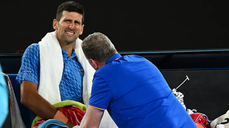 Djokovic, seeded fourth this year in Melbourne, was forced to take a medical timeout after a grueling first set against Dimitrov in which he saved three set points before prevailing in the tiebreak. Djokovic, whose upper left leg was heavily strapped, required treatment again in the third set but by that stage was well in control against the number 27 seed.